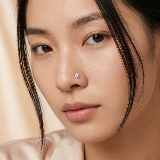 Single Stone Nosepin Simple, elegant, and sophisticated — that is what the single Stud Nosepin brings to you. With a beautiful diamond set on one end, the stud can elevate your simple style with its elegant sparkle. This stud comes with a simple... read more